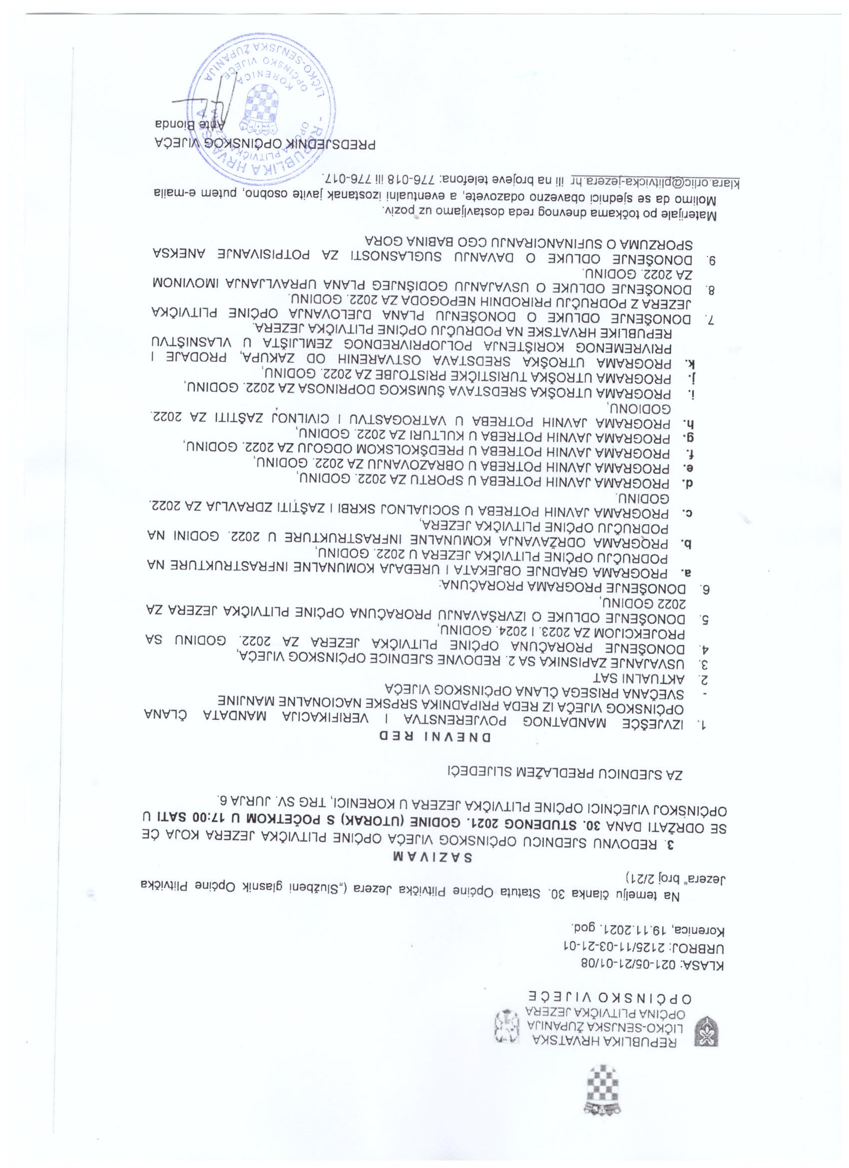 - Zajedno sa zamjenicima prisustvuje sjednicama Općinskog Vijeća,